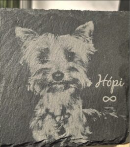 A kis kedvencek nem csak állatok, hanem családtagok. Ezzel az egyedi, lézergravírozott pala képpel méltó emléket állíthatsz nekik, vagy megörökítetted a legszebb közös pillanatot. A természetes kő és a precíz gravírozás találkozása teszi igazán különlegessé és időtállóvá.